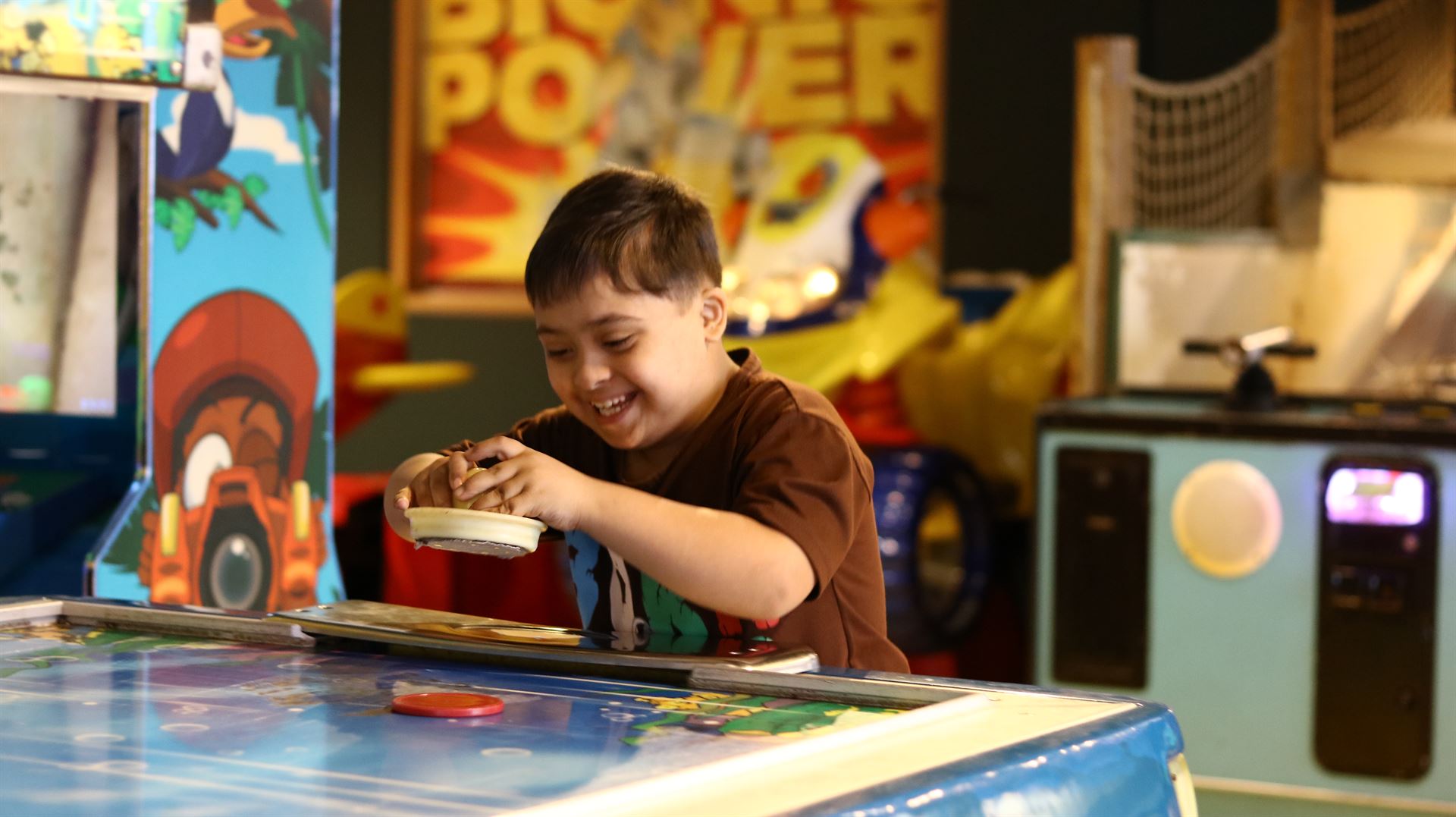 Hard-of-hearing children from the Karachi Down Syndrome Program enjoyed games at Sindbad and meals at the Food Court.